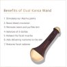 Naudodami "Kansa Wand" veido masažuoklį, masažuokite kaktą pirmiausia pagal laikrodžio rodyklę, tada prieš laikrodžio rodyklę. Tai neutralizuoja įtampą kaktoje ir nuramina.