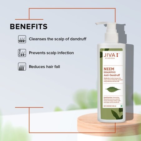 Jiva Neem šampūnas sukurtas iš priešgrybelinių žolelių mišinio, įskaitant nimba medį (indišką medį) ir azijinį baziliką (tulsi). Neem naikina problemas, susijusias su pleiskanų susidarymu. Tulsi eterinis aliejus pasižymi antibakterinėmis ir priešgrybelinėmis savybėmis, maitina ir stiprina plaukus bei suteikia jiems blizgesio.