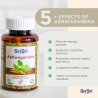Poveikis: ašvaganda, pagrindinė tabletės sudedamoji dalis-migdomoji vitanija yra viena iš galingiausių rasajanų, žinomų senovės Indijoje, ir ji palengvina Kapha ir Vata došas. Tai padeda atjauninti ir išgydyti protą ir kūną. Šimtmečius jis buvo naudojamas kaip vaistas žmonėms gydyti nuo kasdienių bėdų, tokių kaip stresas, nerimas, išsekimas, miego trūkumas ir kt. Ashwagandha stiprina nervų sistemą ir yra gerai žinomas kaip ramus ir vėsus. Be to, žolelės diuretikai, afrodiziakai ir imunomoduliatoriai palengvina inkstų ligas ir infekcijas bei suteikia jūsų gyvenimui gyvybingumo.