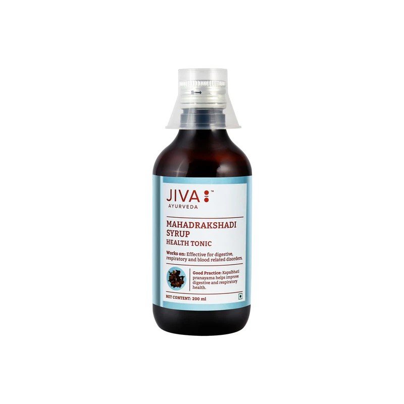 Indikacija: Jiva Mahadrakshadi sirupas skiriamas esant tokioms ligoms kaip kolitas (storosios žarnos uždegimas), tuberkuliozė, kosulys, hemoptizė, gerklės skausmas, gerklų problemos, odos ligos, kvėpavimo sutrikimai, virškinimo sutrikimai, kraujavimo sutrikimai, silpnumas, svorio kritimas ir perteklinis kūno karštis.